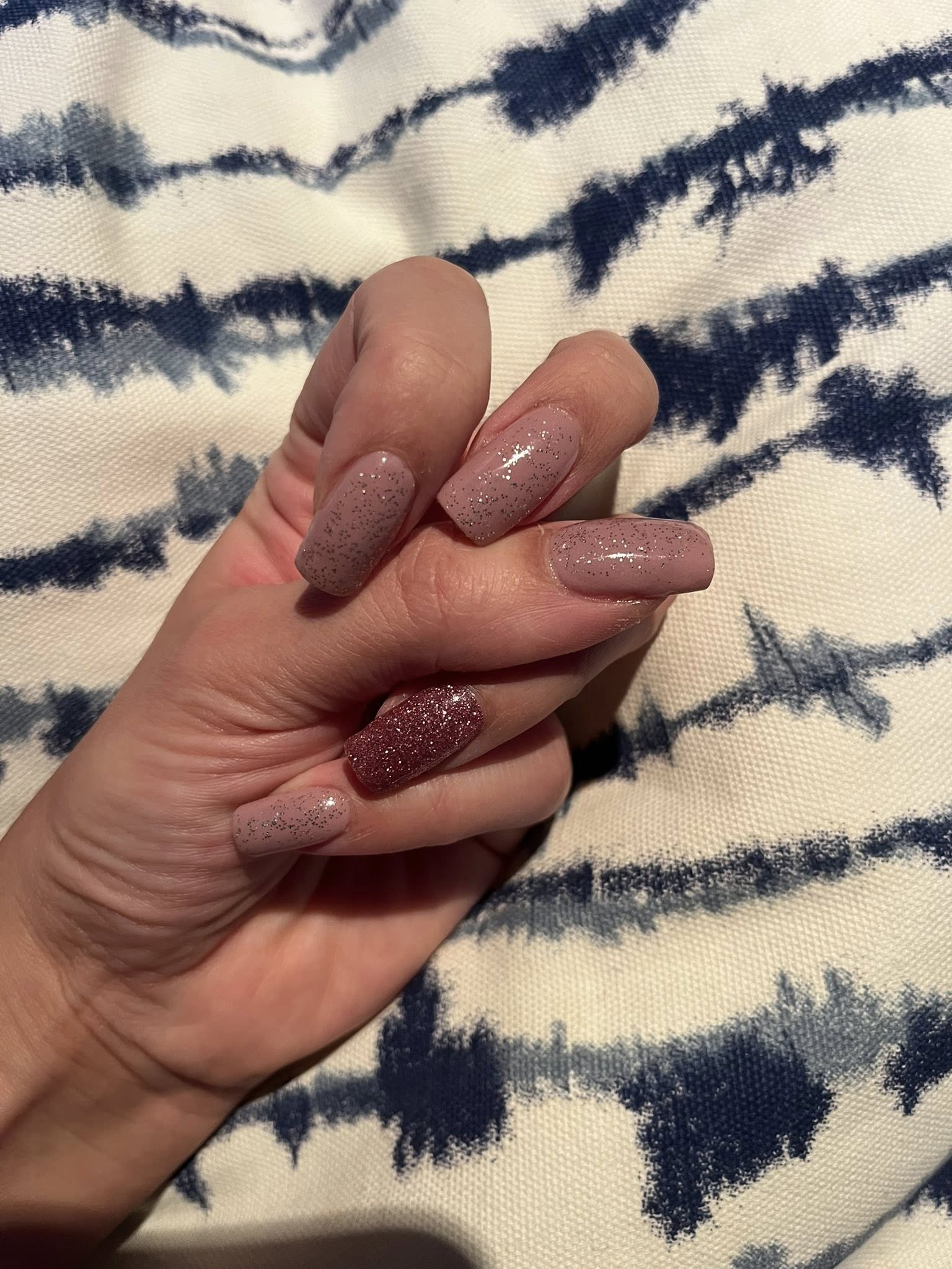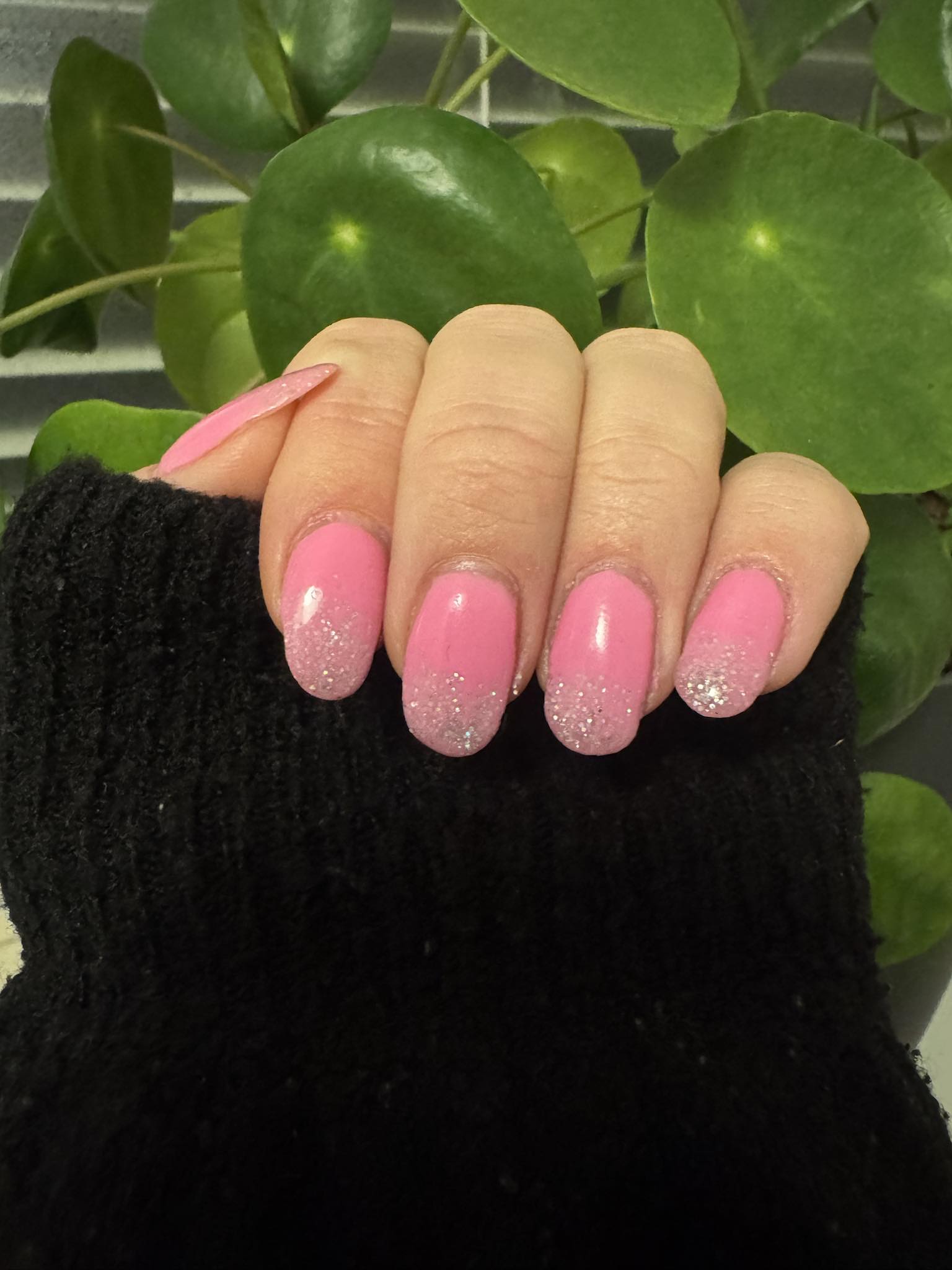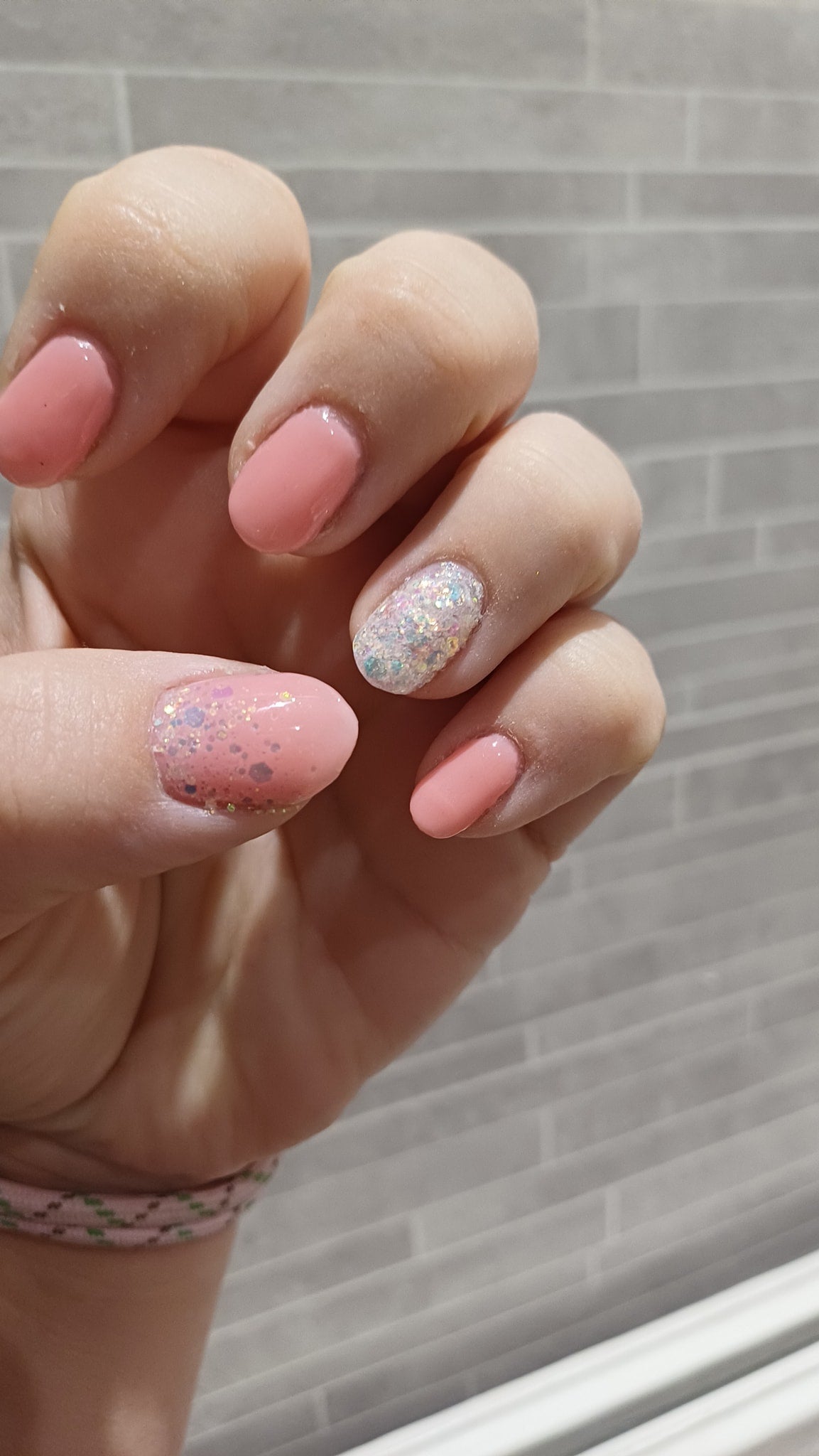 Pimpade mina rosa naglar med lite glitter i olika mängd ✨✨✨