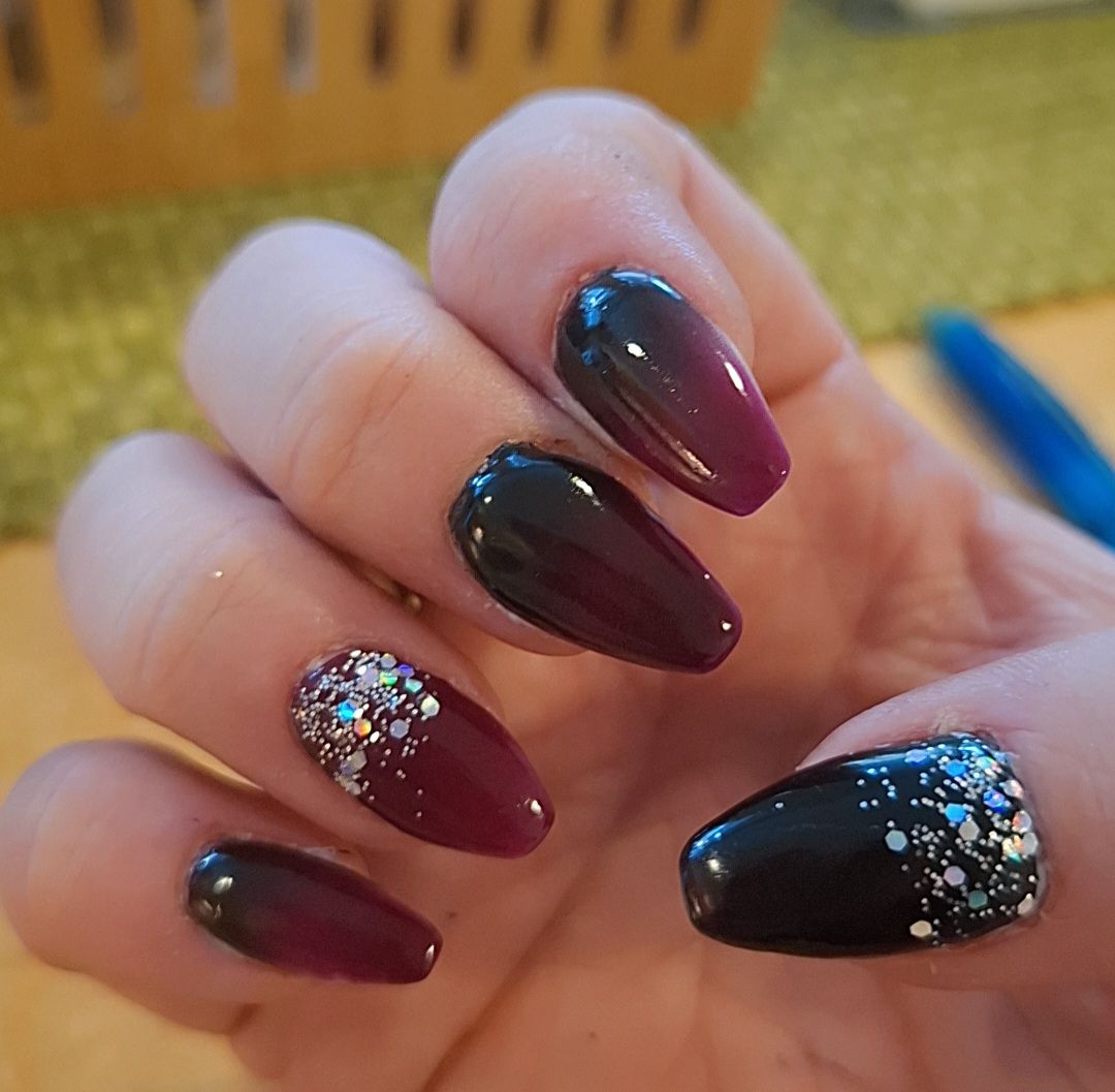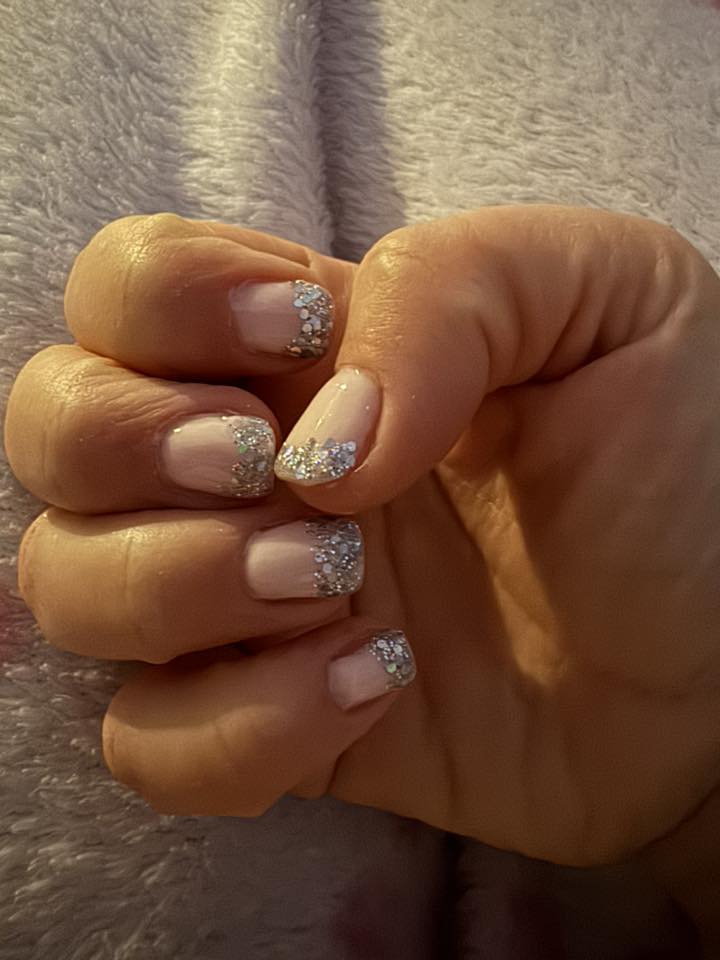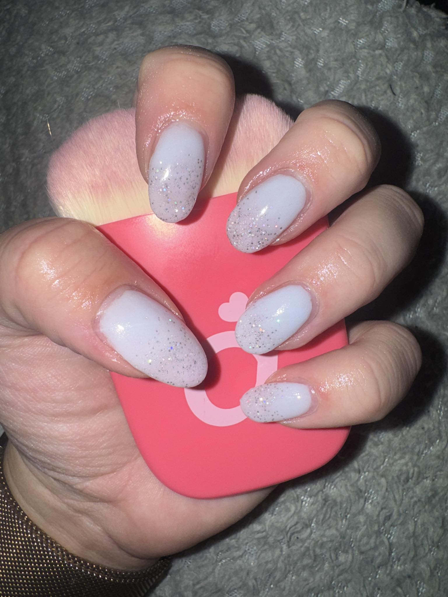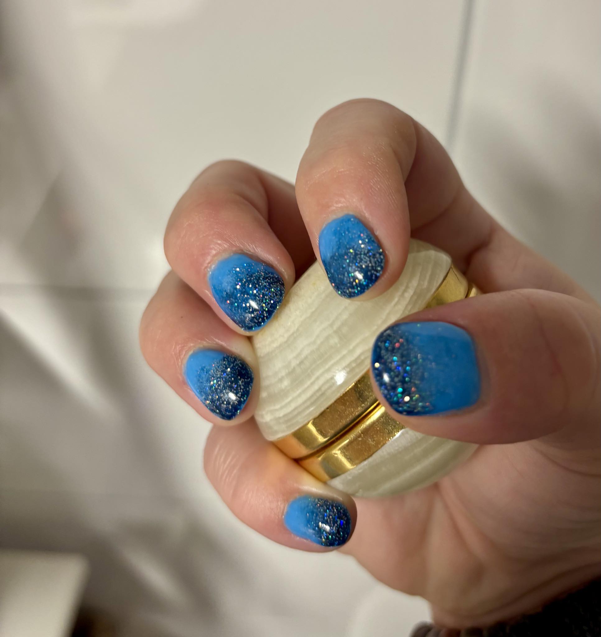 2 veckor brukar vara lagom mellan färgbyte 🤩 Denna gången blev det Clear och Golden child. Någon som har tips på hur man får en snygg och jämn fade med glitter? 🤩