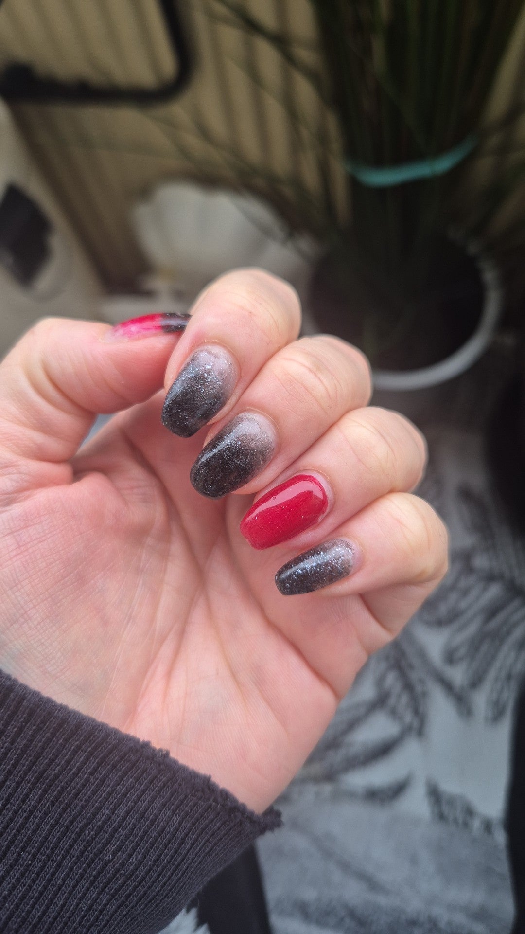 Efter ett tredje försök kan jag äntligen säga att jag är nöjd nog att lägga upp bild på resultatet 😍😅 Har använt Moon Magic och ett stänk av Temptress blandat med clear. Har bara kört med ett lager Shine då jag förra gången hade svårt att få det andra lagret att torka. Tänker att jag ska bättra på med nästa lager om någon vecka (om det behövs). Nästa gång kanske man vågar sig på de mörkare färgerna 🖤❤️
