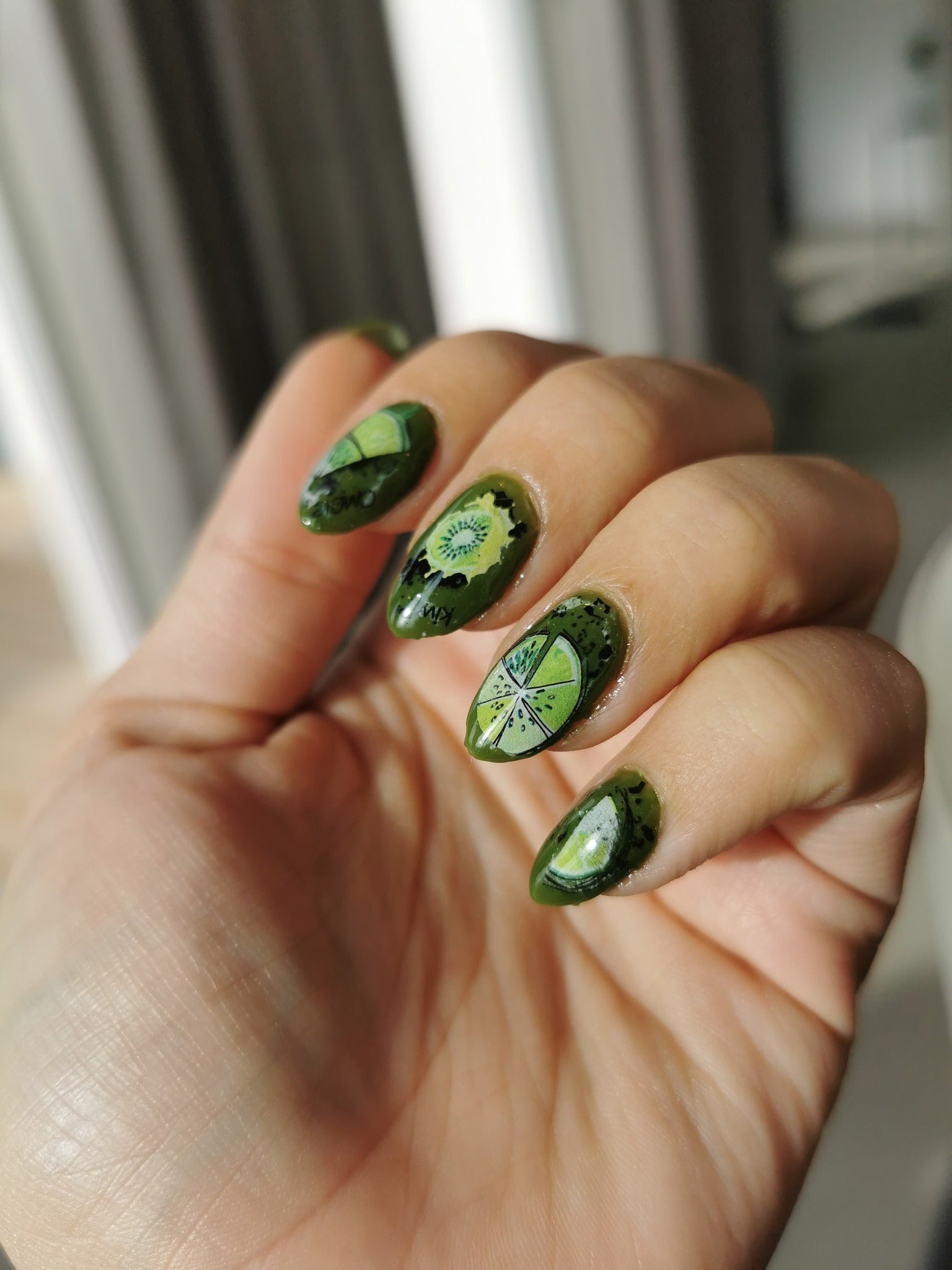 Vacation-nails 🍸 Imon åker jag på semester och då behövs ju ett nytt roligt set naglar eller hur 😄 Khaki och "stickers"? Sånna jättetunna utan klister som man lägger i vatten. Stickers limmade med build under ett lager med clear
