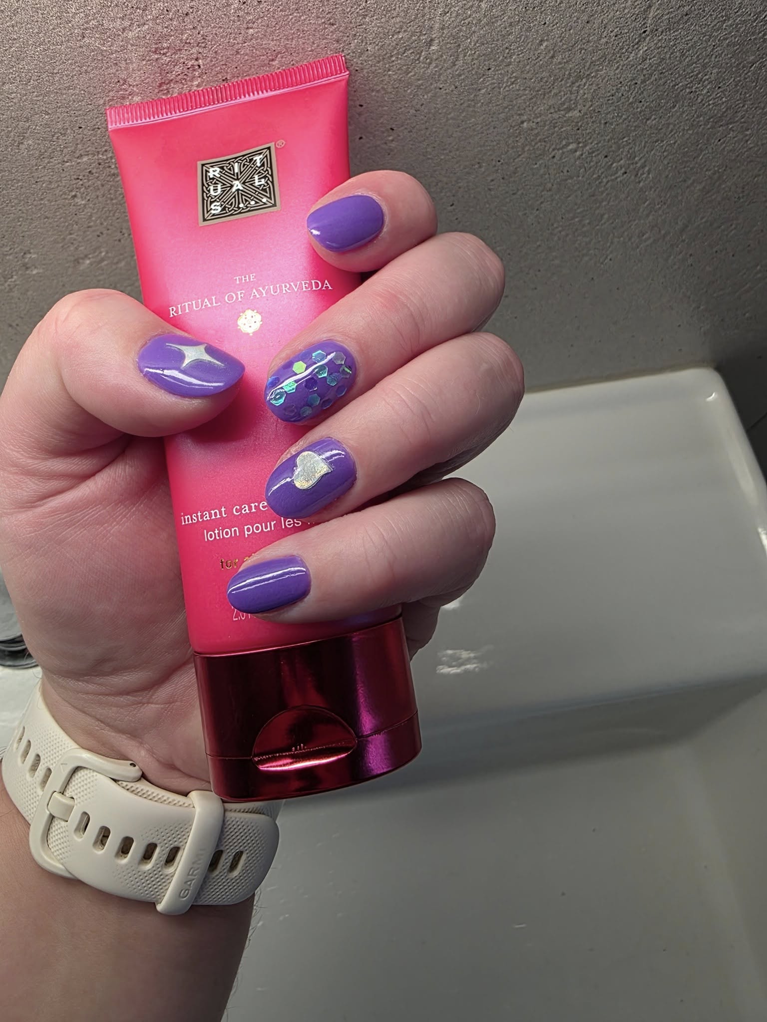 Fick bli två olika lila. Och glittret det tar väl sig också