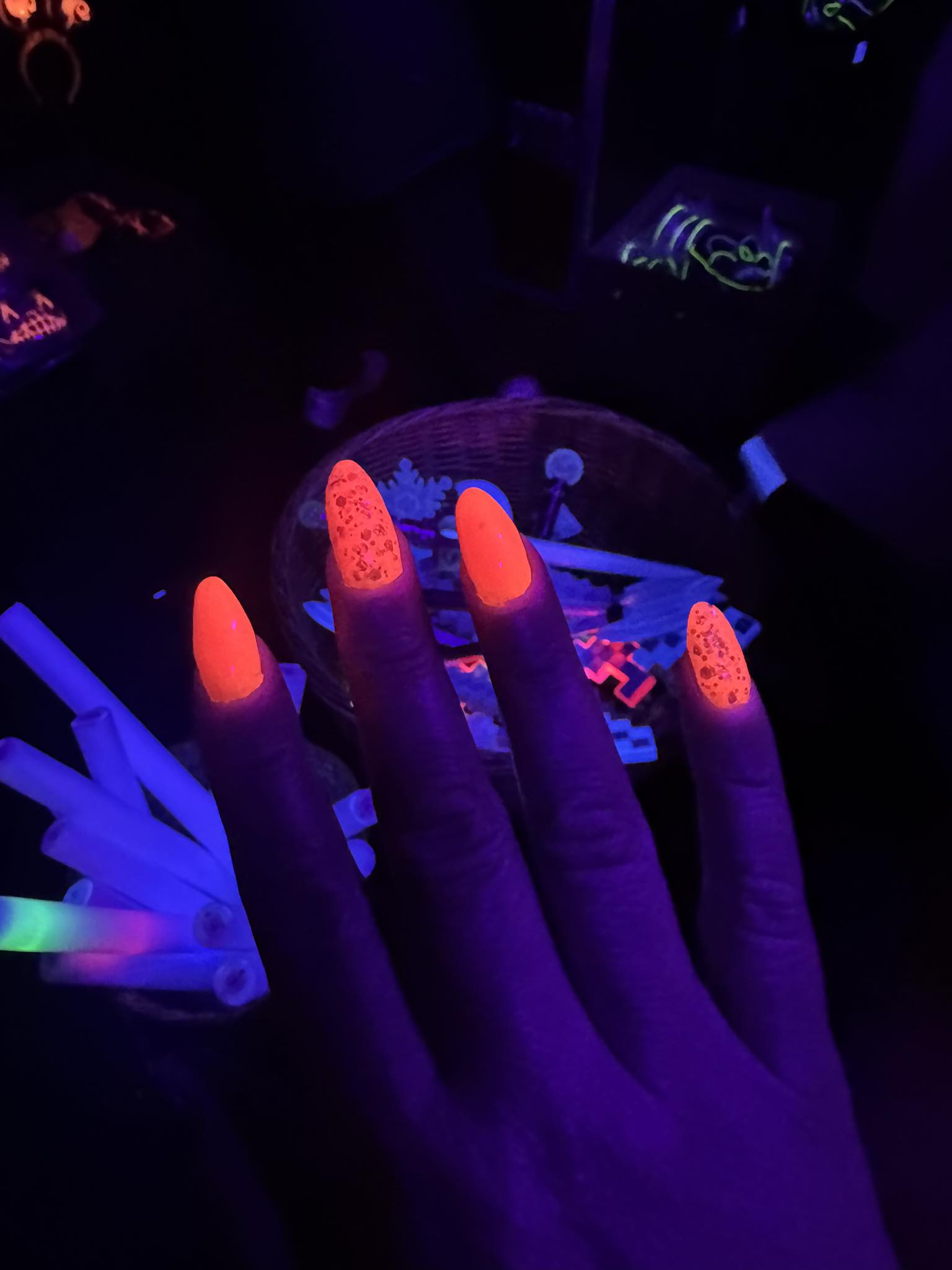 Klarade inte av mina rosaglittriga naglar så jag var tvungen att göra nya… igen…. 🫠 nu är jag nöjd 🌸🧡 vill någon byta/köpa mitt rosa glitter-pulver? (finns bild i flödet) hör av er, den är jättefin men inte min färg 💕
