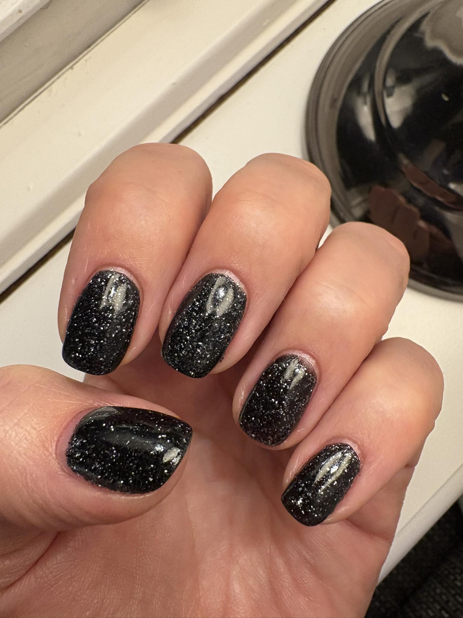 When your nails match your mood: calm, confident, and a little bit sparkly ✨🖤 Älskar hur enkelt och snabbt dippi är, särskilt för en upptagen mamma 🥰 Färger: Blackout & Your Majesty