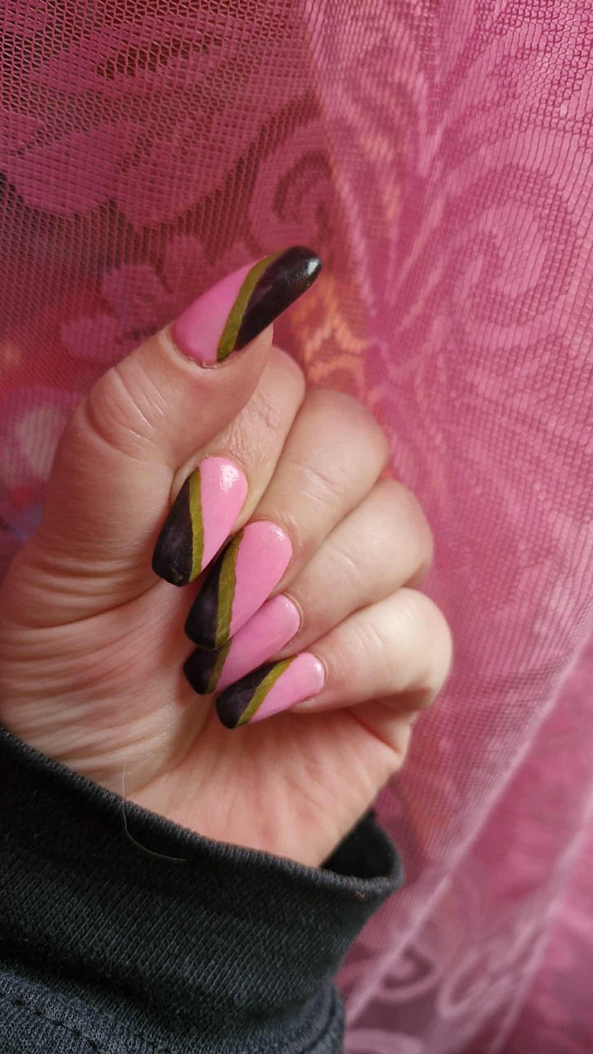 Jag är alltid sugen på att göra nya naglar och dessa blev det den här gången💖 Strecken gör jag efter tredje lagret build och använder en smal borste med build och häller sedan på den rosa färgen. Sen ett lager clear över innan filning. Kan behövas en del filning för att få nageln jämn men har gjort såhär några gånger och tycker det är smidigt ändå👌🏻
