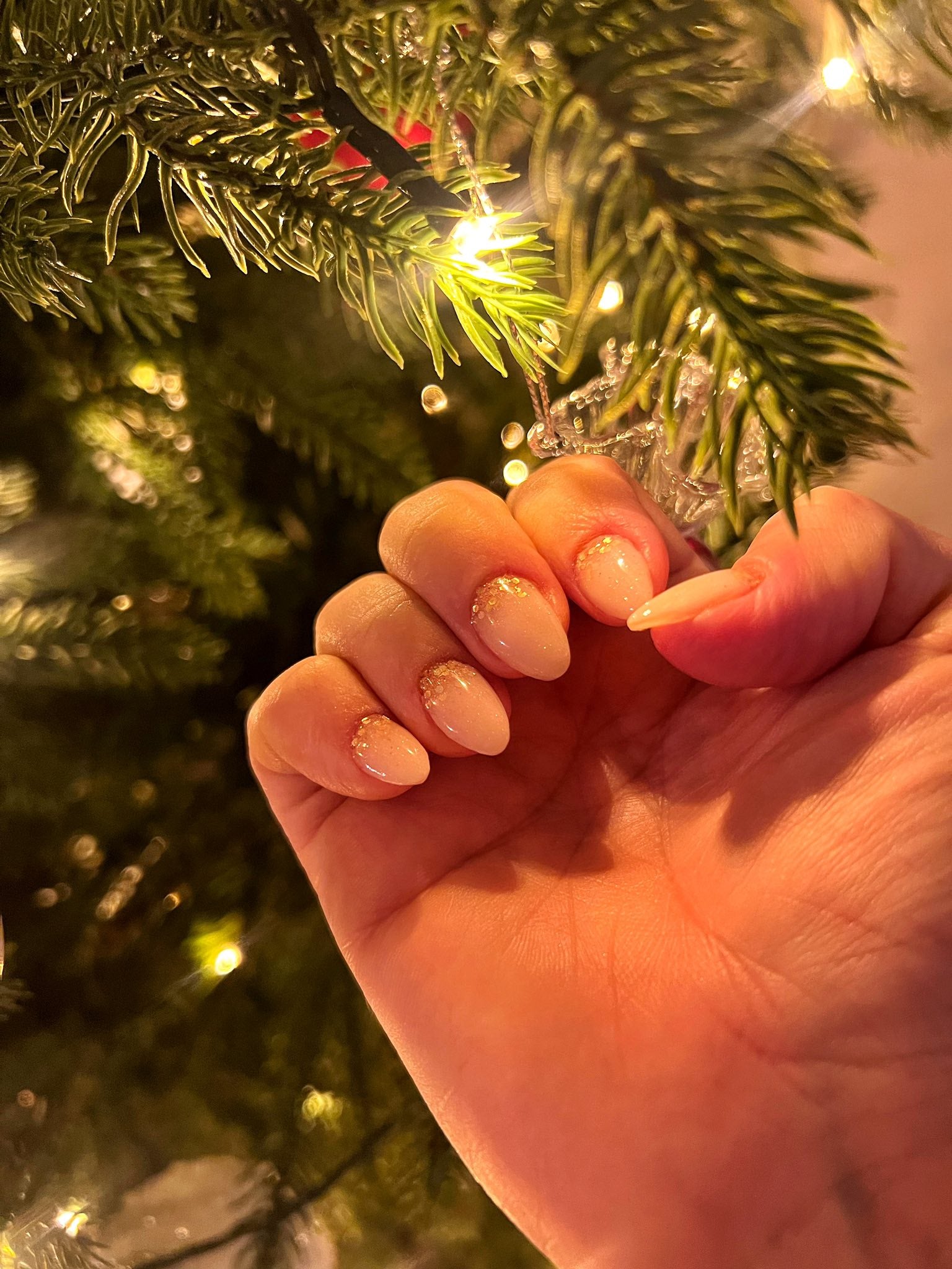 Nyårsnaglarna fixade🎇 Testade nya färgen Angel Energy med Pillow Talk och lite glitter strösslat över💫