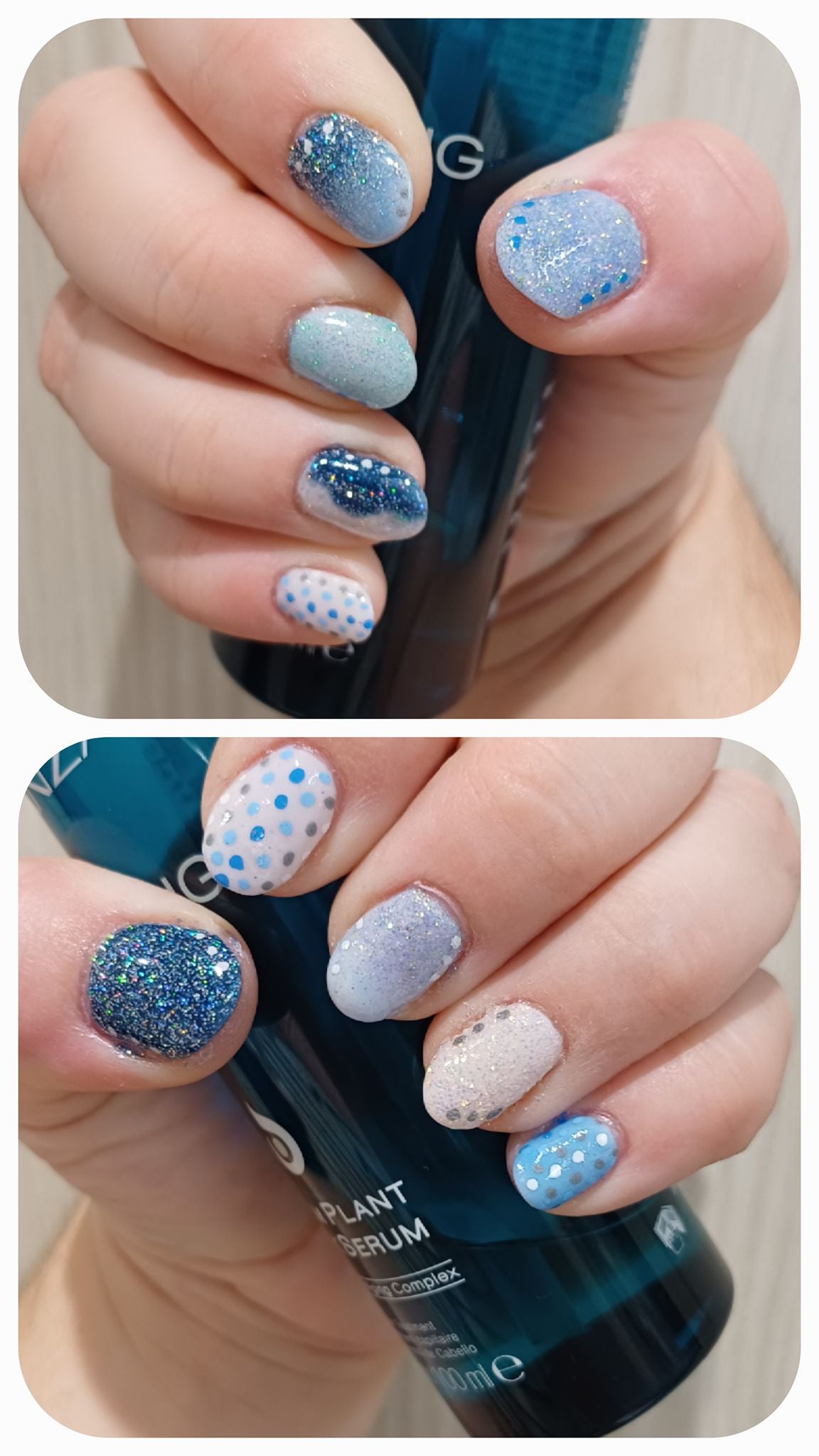 Kvällens pyssel blev test av både nailart pennorna, olika appliceringstekniker och en himla massa blått glitter! Så roligt! 💙✨️😊