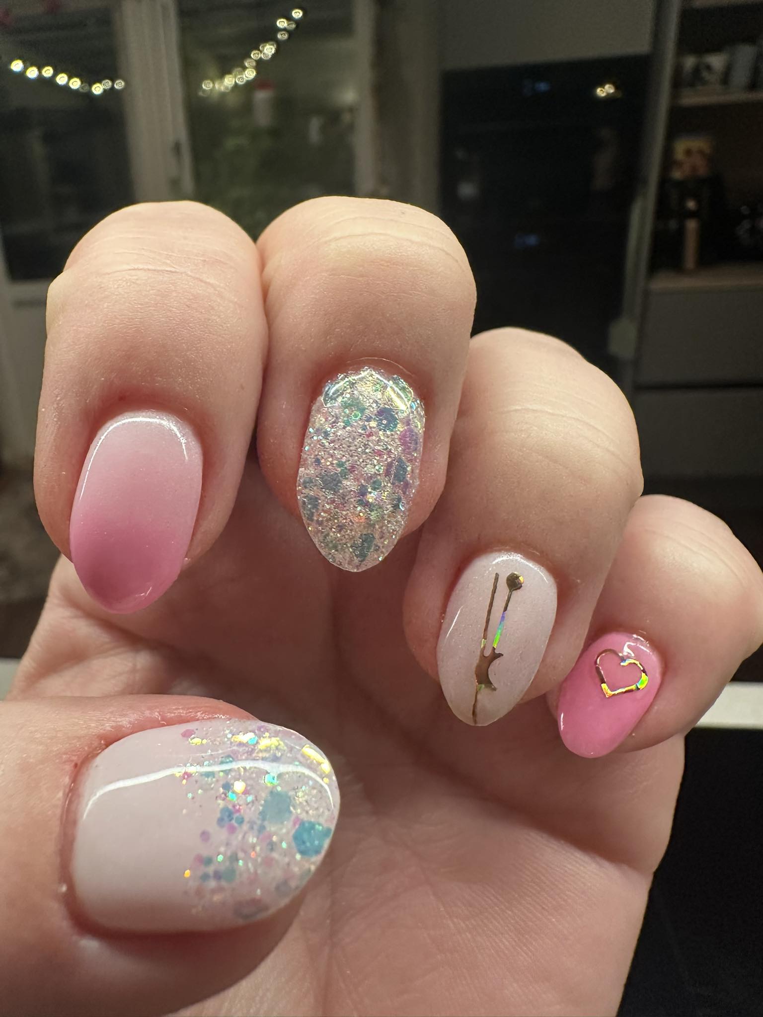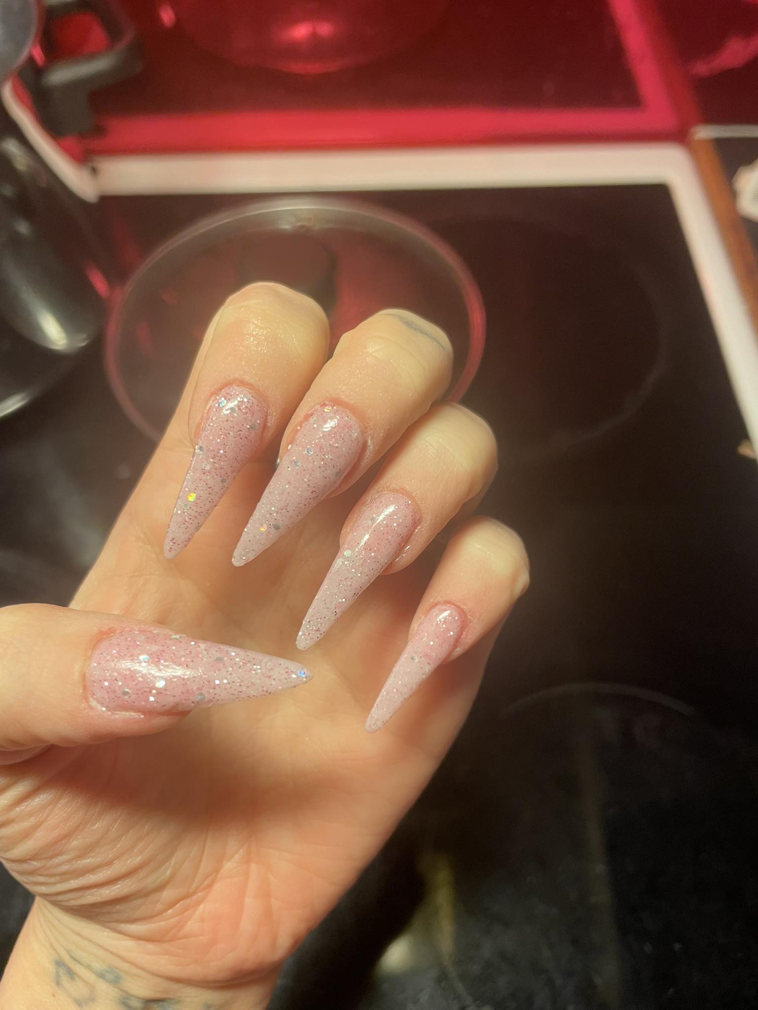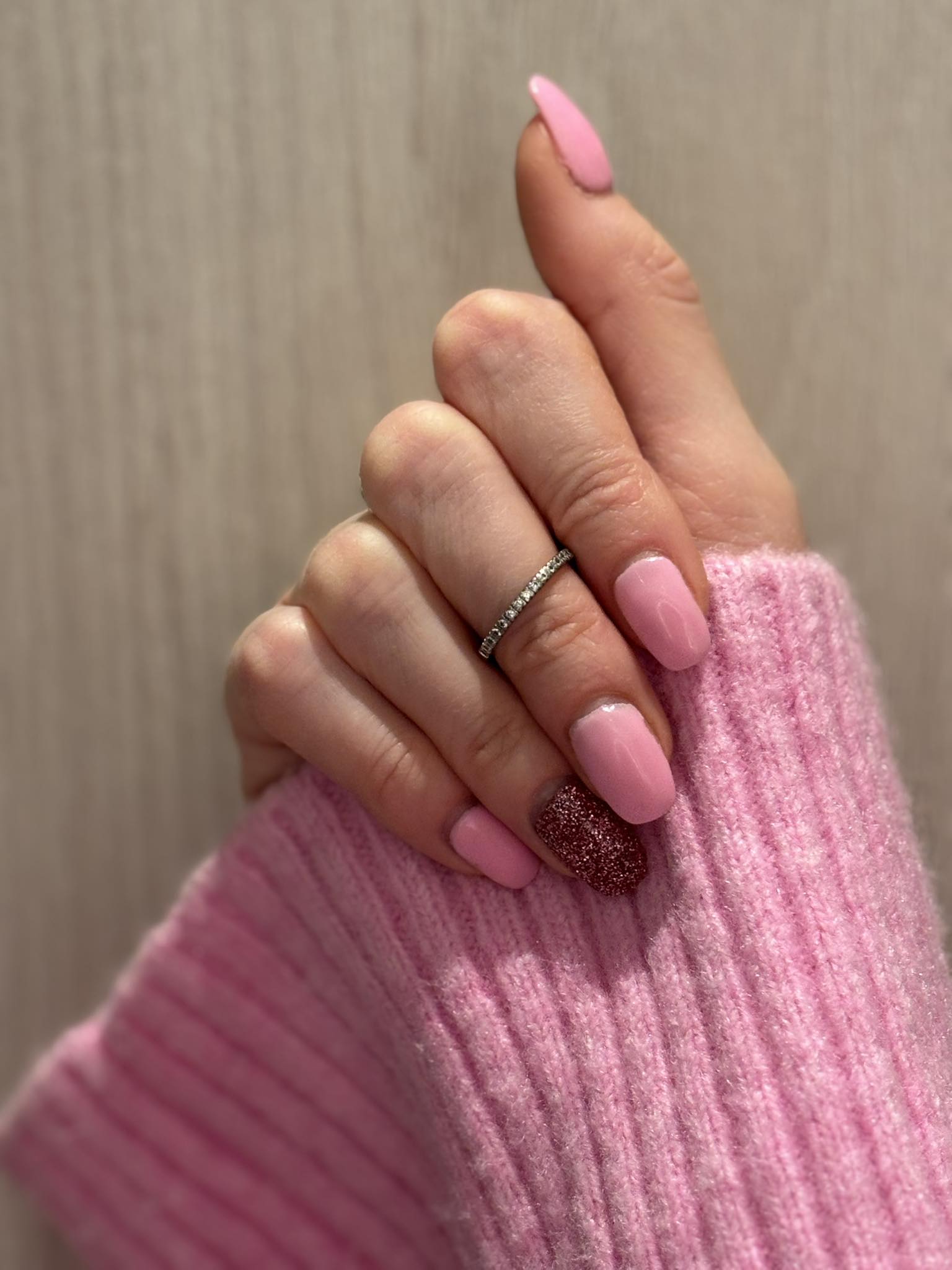 Pimpade mina rosa naglar med lite glitter i olika mängd ✨✨✨