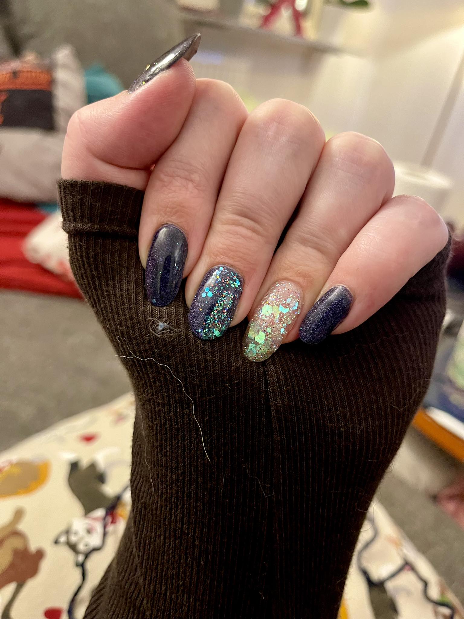 Hej å hå, första gången jag gjort något annat än enfärgat. Vissa naglar blev bättre och andra sämre. Sett att många kör glitter längst in mot nagelbandet och utåt nu, insåg efter att de kanske är snyggare, får bli så nästa gång. Men jag tycker alltid det är svårt att få till en snygg form på nageln, jag gillar square mest. Men kul är det.🤩💅