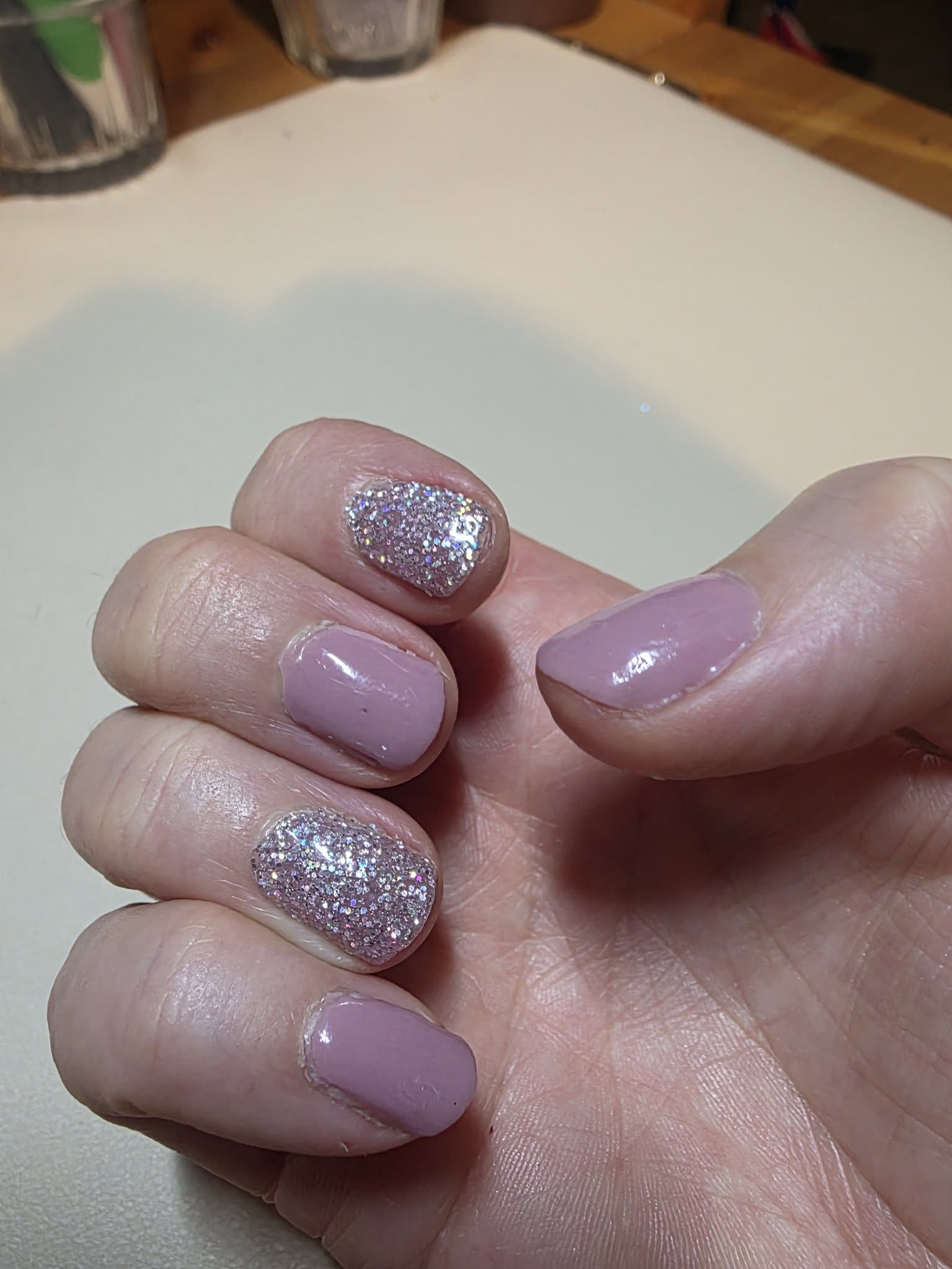 Fick bli två olika lila. Och glittret det tar väl sig också