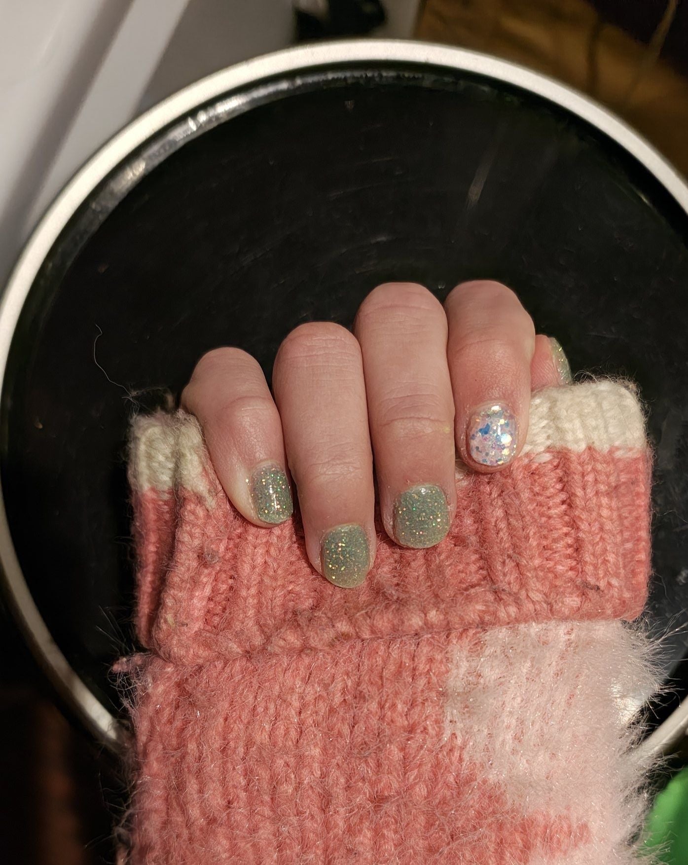Min absolut finaste manikyr hittills 🥰 Saknat en nude-rosa så blandade min egen med persuasion och clear (och väldigt lite pillow talk). dippi Även använt färgen envy plus lite glitter jag hade hemma.