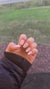 Klarade inte av mina rosaglittriga naglar så jag var tvungen att göra nya… igen…. 🫠 nu är jag nöjd 🌸🧡 vill någon byta/köpa mitt rosa glitter-pulver? (finns bild i flödet) hör av er, den är jättefin men inte min färg 💕