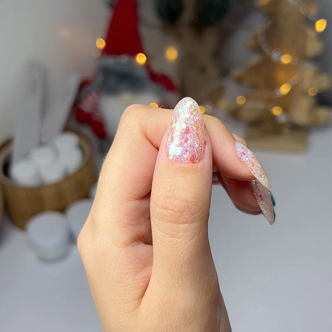 Vi presenterar Frosty, en glitterfärg med klara undertoner som ger din manikyr en touch av magi! Med olika storlekar av skimrande regnbågsbitar lyfter denna mångsidiga färg varje nagellook och är perfekt för accentnaglar eller att kombinera med dina enfärgade nyanser. Omfamna din lekfulla sida och gläns som en diamant (eller en regnbåge)! Innehåller naturliga botaniska ingredienser och håller upp till 5 veckor utan att flagna.