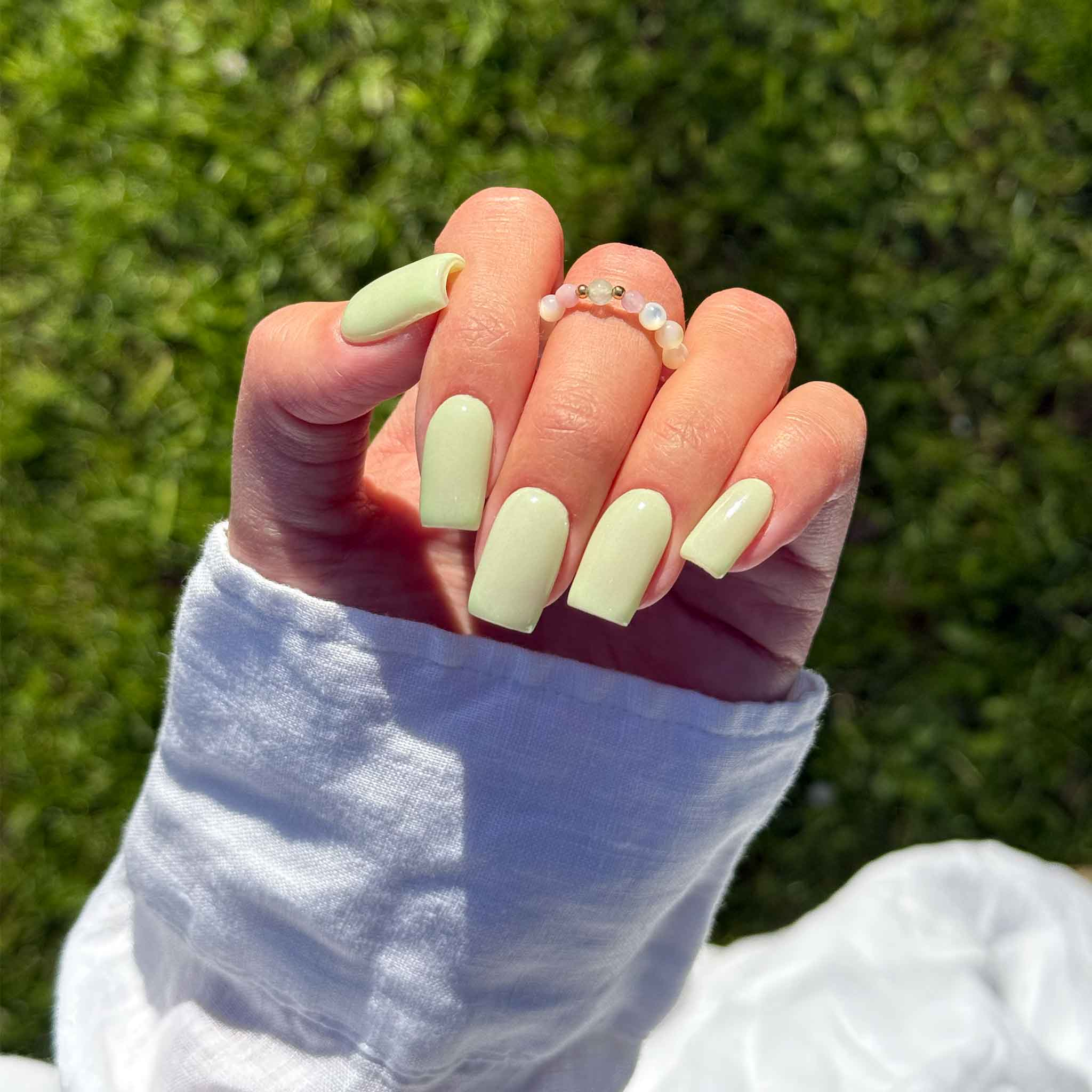Fräsch, lekfull och full av personlighet – Whimsy är en mjuk pastellgrön nyans som ger en färgklick samtidigt som den håller stilen elegant. Den perfekta färgen för sommarnaglar eller när du vill ha något lite annorlunda utan att gå all in. Denna drömmiga ton passar alla nagelformer och fungerar lika fint i både manikyr och pedikyr. Perfekt för dig som gillar att experimentera med nail art, ombré eller enkla nageldesigner med en twist. Professionella naglar har aldrig sett så naturligt coola ut.